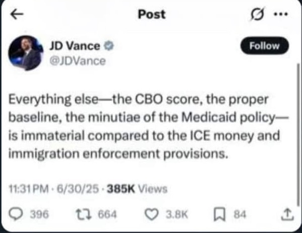 But you know what will go into effect immediately? The tax breaks for the billionaires and the massive budget for ICE. The money they have appropriated for ICE is off the charts. It’s ridiculous. It will make ICE the greatest paramilitary organization, better-funded than save like 15 military forces of the world. Breathe with me, and for sure, fact-check me on Snopes or something and come back to tell me how I am wrong.